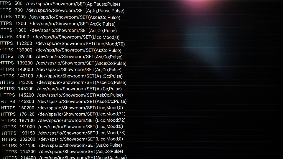 El Digital Experience Tour transfiere el comando, a través de la red, a una entrada virtual de texto que creamos en el Loxone Config, después se conecta al conector API de los bloques que controlaremos. Nombramos la entrada virtual de texto «Showroom» después del nombre de la habitación que utilizamos.
