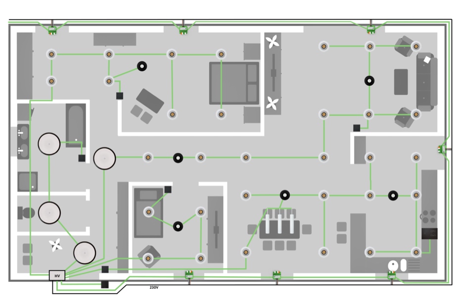 Una vez seas Partner estaremos encantados de ayudar a planificar el cableado de tus proyectos junto a ti. En este gráfico te mostramos el cableado utilizando el ejemplo de la iluminación.