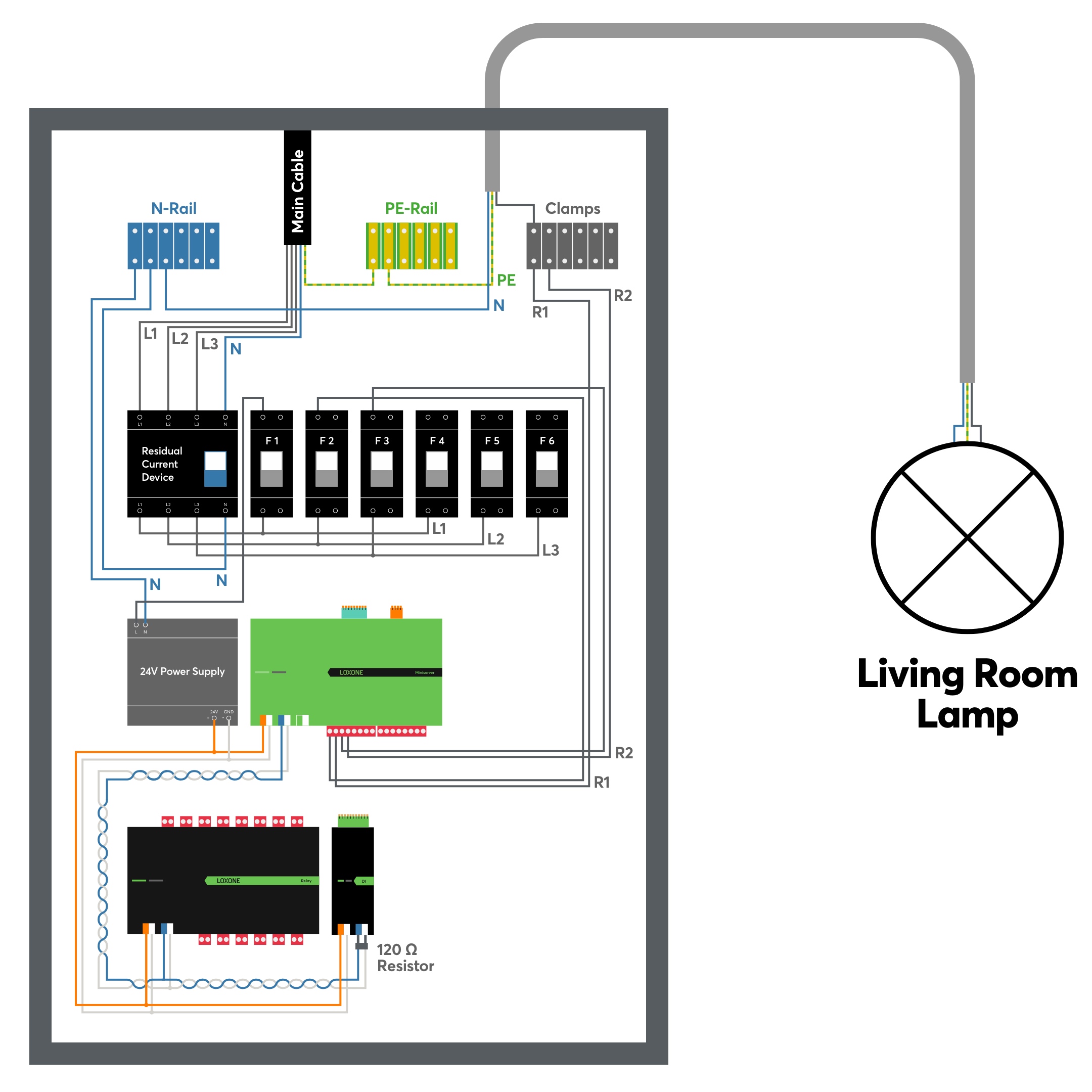 Una vez seas Partner estaremos encantados de ayudar a planificar el cableado de tus proyectos junto a ti. En este gráfico te mostramos el cableado utilizando el ejemplo de la iluminación.