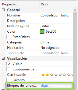 Los objetos que estaban vinculados al Controlador de habitación ahora se muestran debajo de las funciones del bloque: