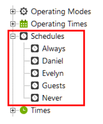 Los tiempos de acceso creados se enumeran en el árbol periférico en tiempos de cambio. También se pueden editar aquí: