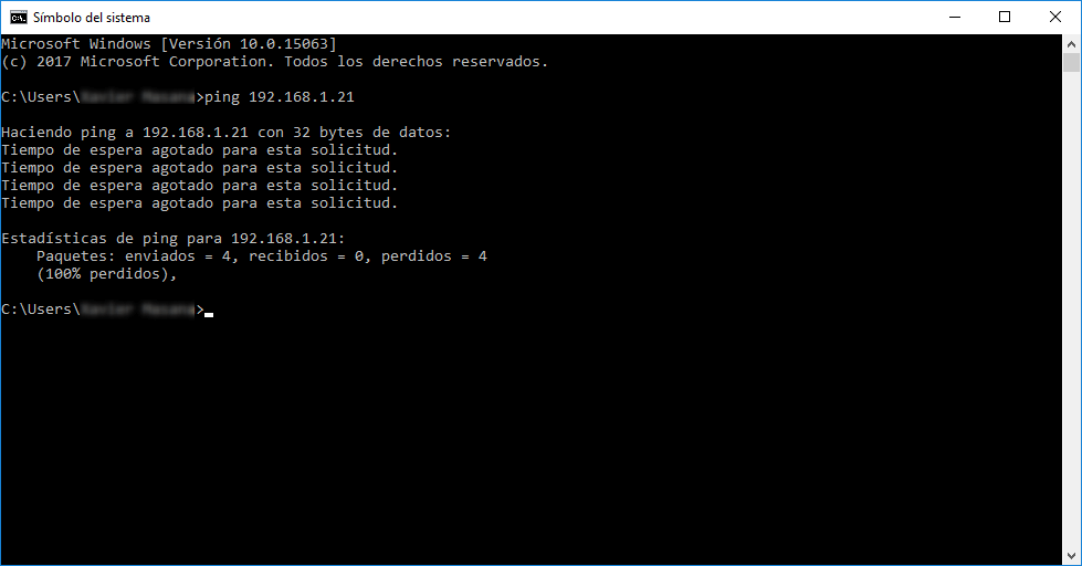 3. Si obtiene respuesta del comando ping como en la imagen anterior quiere decir que tiene acceso al equipo. Si lo que obtiene es un mensaje Host de destino inaccesible quiere decir que desde su ordenador no tiene acceso a la dirección IP del equipo.