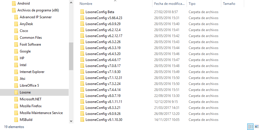 Y en la carpeta del Menú Inicio. también recomendamos añadir la versión del Loxone Config.