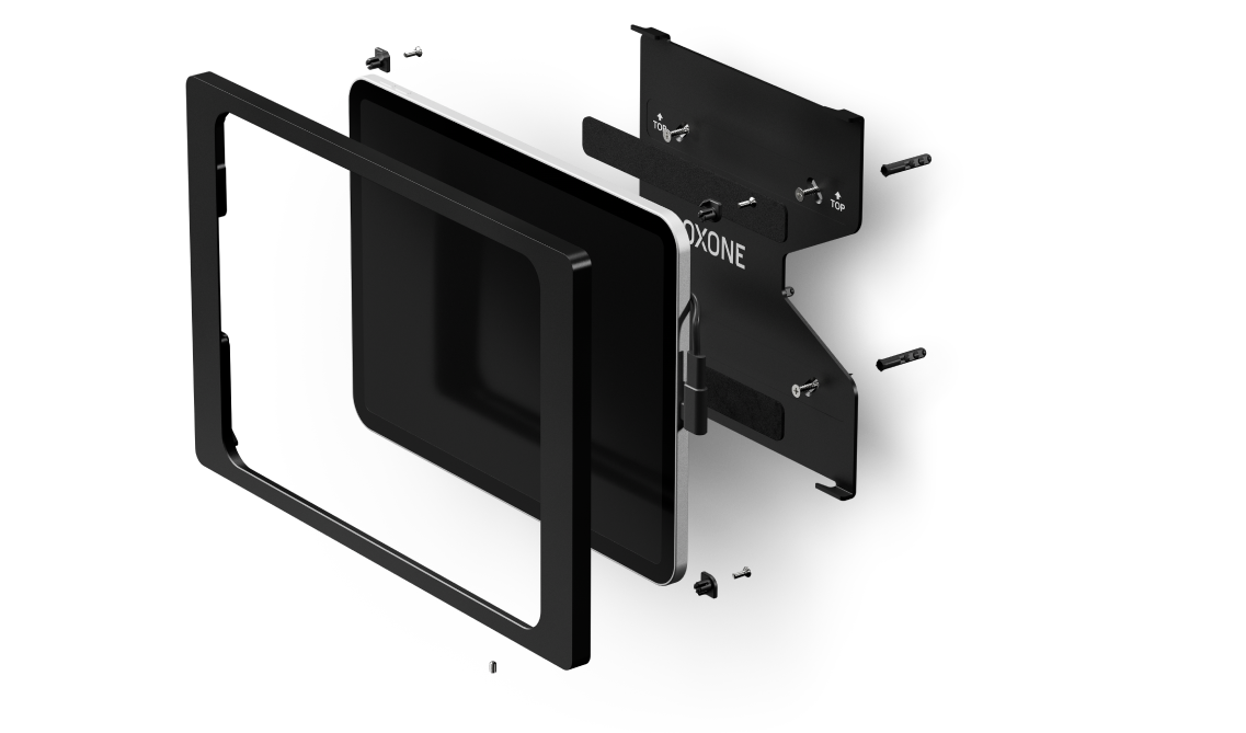 El soporte de pared permite una instalación sencilla y segura de tu iPad, ofreciendo además una protección fiable contra robos. Gracias a su diseño, el cable de carga queda completamente oculto, recorriendo de forma invisible el camino desde la caja empotrada en la pared hasta el iPad.