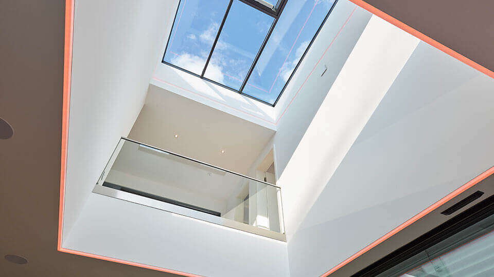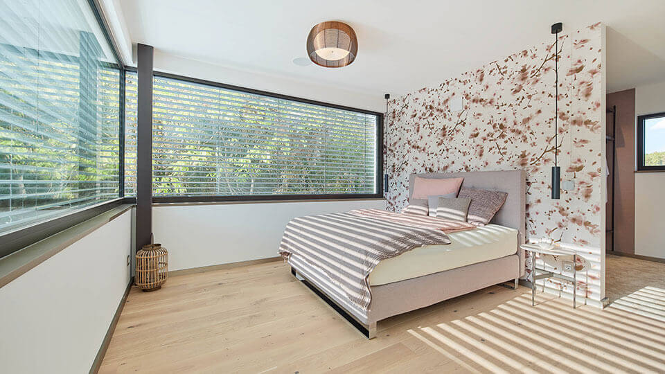 Galería de fotos donde puede verse un ejemplo de casa prefabricada con la empresa Luxhaus donde se utiliza tecnología Loxone.