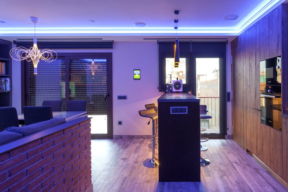 Piso en Madrid con numerosas funciones inteligentes que lo convierten en una Smart Home real. Los propietarios entran y la iluminación sigue sus pasos, la temperatura se regula automáticamente y disfrutan al máximo de su tiempo.