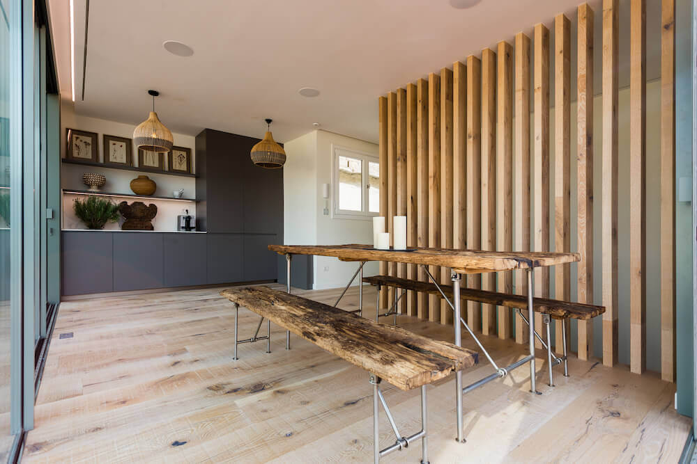 Belelza, inteligencia y bienestar… En el Eixample, céntrico distrito de Barcelona con gran riqueza arquitectónica, encontramos este dúplex con tecnología Loxone Smart Home. Espacios decorados con encanto, mezclando elementos naturales que aportan una sensación de bienestar embriagadora. Luces que se encienden y apagan de forma automática, gestión integrada del clima y la producción de las placas solares.