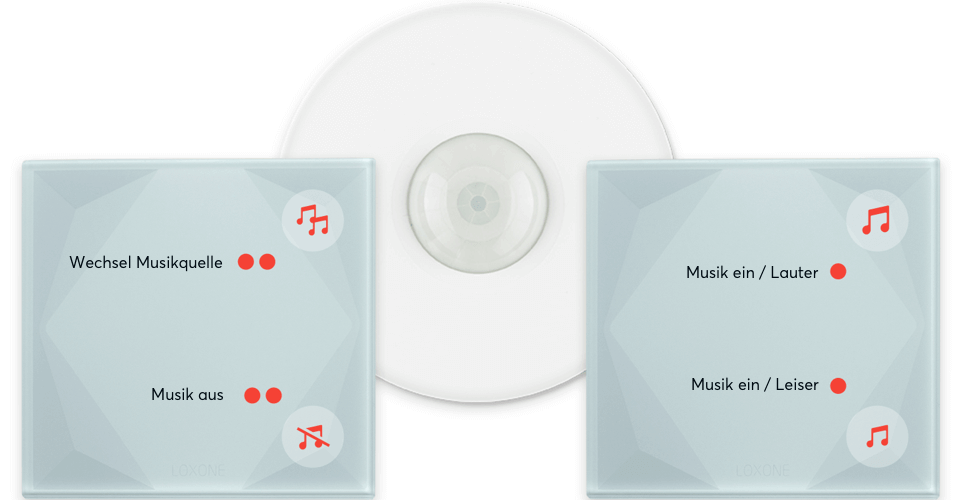 Le fait que la musique préférée de vos clients commence à jouer lorsqu’ils entrent dans une pièce (s’ils le veulent) est une caractéristique impressionnante. Les capteurs de mouvement rendent cela possible. Dans l’étude du projet avec vos clients, découvrez dans quelles pièces ils peuvent avoir besoin de la lecture automatique de la musique lorsqu’ils entrent (par exemple dans la salle de bain entre 7h et 20h). La configuration du Loxone Touch et du détecteur de présence, ainsi que leur interaction avec le Music Server, sont facilement obtenues grâce à la configuration automatique dans Loxone Config. Tout partenaire Loxone peut atteindre ce niveau d’automatisation et de contrôle du multimédia en quelques clics – pas de programmation personnalisée compliquée !