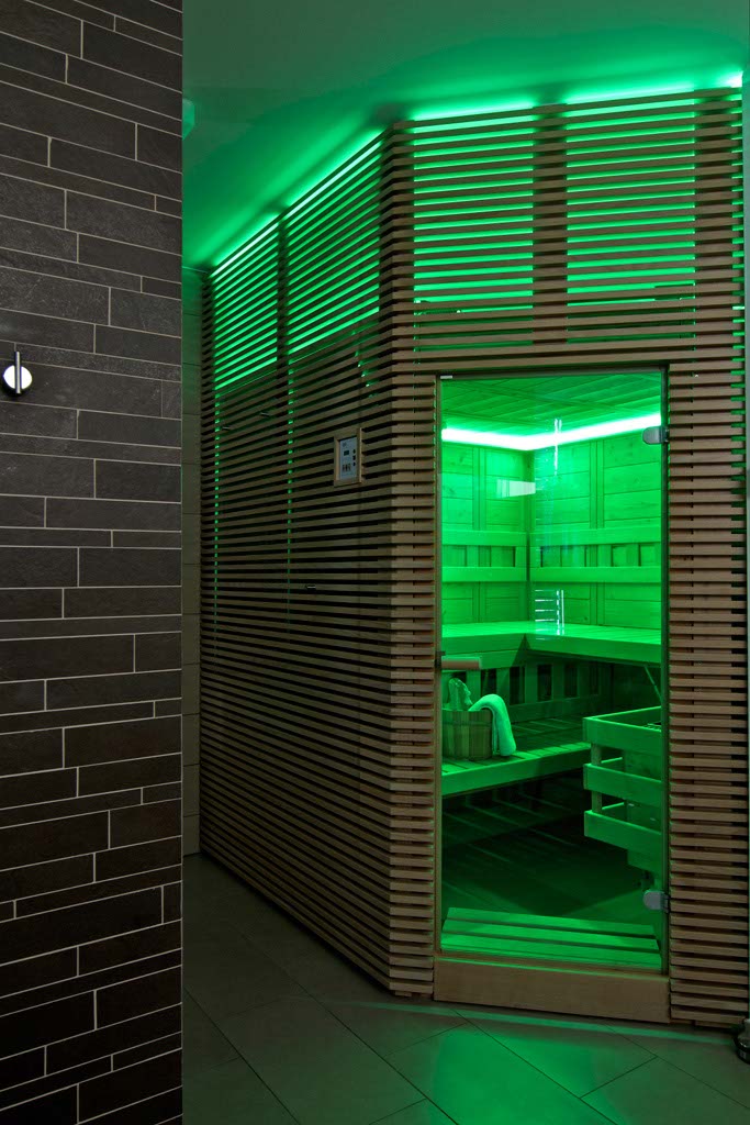Nous activons notre sauna avec un iPhone sur le chemin du retour du ski. 40 minutes plus tard, peu de temps après que nous soyons arrivés à la maison, le sauna est prêt. La température, l’humidité, l’éclairage et la musique sont parfaitement adaptés. En outre, la température, l’humidité et le mode de sauna peuvent être réglés via app.
