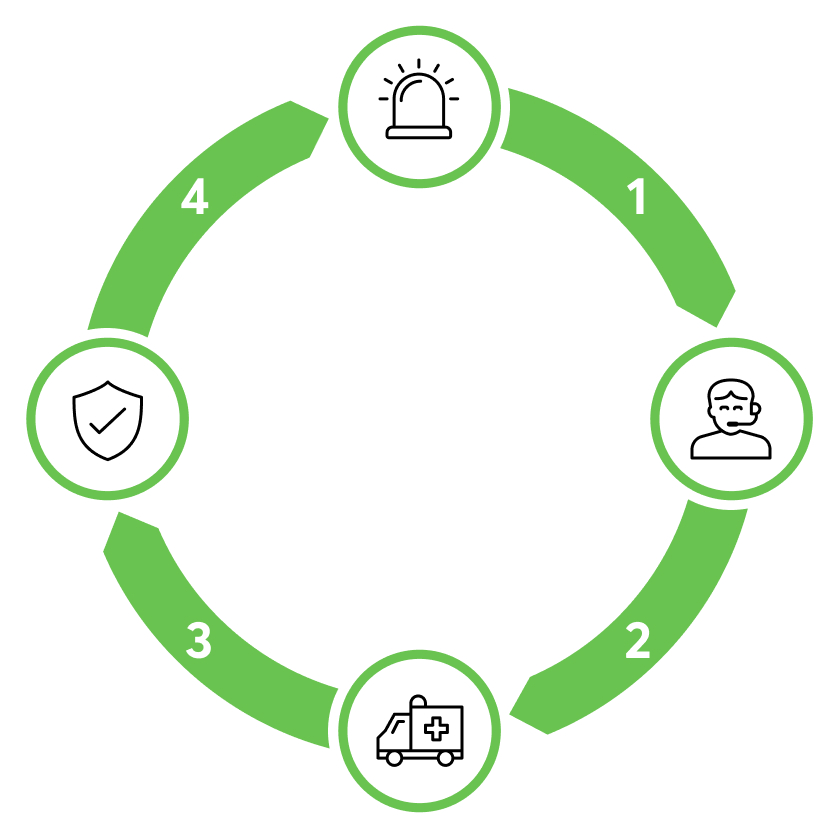 2. traitement de l’alarme : Certas reçoit le signal et transmet l’information au service concerné. 24 heures sur 24, 7 jours sur 7, 365 jours par an.