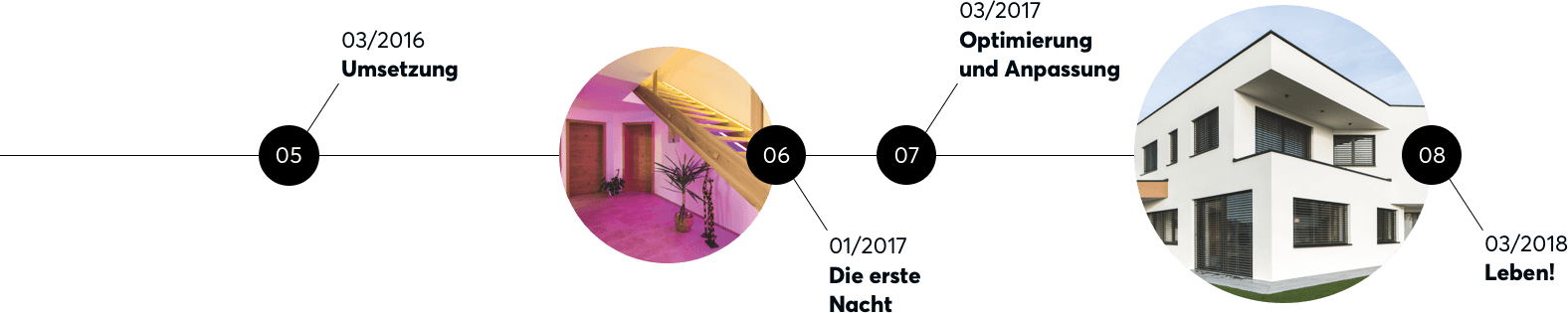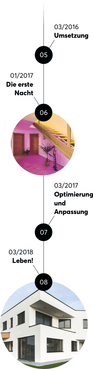 Un jour, j’ai inscrit mon épouse et moi-même pour un Experience Tour à Kollerschlag, en Haute-Autriche. J’ai lu des articles à ce sujet sur Facebook et je voulais juste examiner de près le « vrai » Smart Home et le tester. Mon scepticisme initial a changé en quelques minutes dans ce qu’on appelle showhome: l’ombrage, qui fonctionne automatiquement avec la position du soleil, la musique individuelle dans chaque pièce, les ambiances lumineuses impressionnantes, les nombreuses façons d’économiser de l’énergie,… je voulais… – non – je devais les avoir !