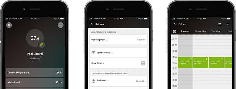 Que ce soit à la maison ou sur la route via votre smartphone, la gestion de votre piscine est accessible depuis partout . Donc, vous pouvez contrôler la température de l’eau, le niveau, les filtres, la couverture de piscine, la nage à contre-courant et plus, quand cela vous chante.