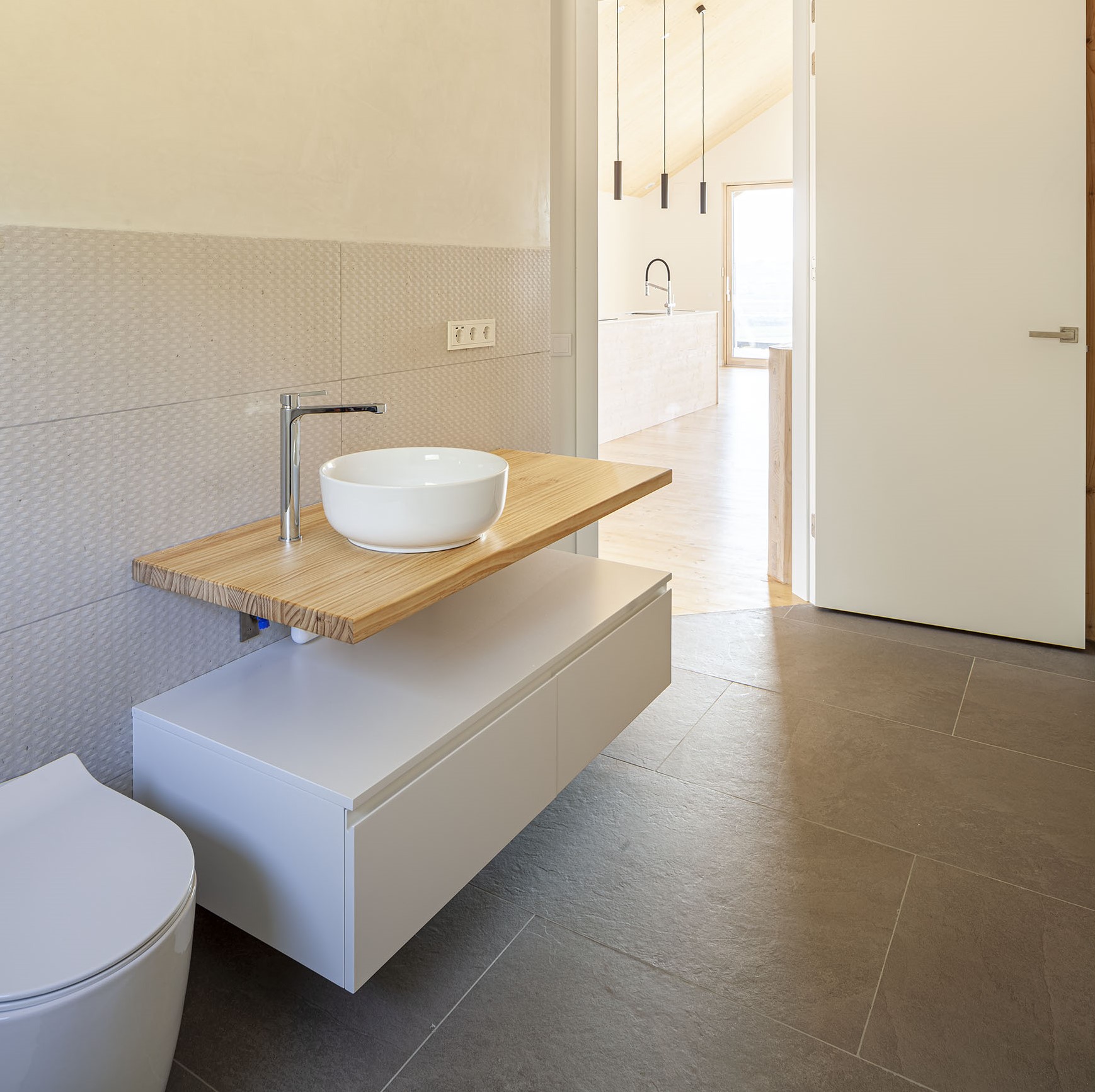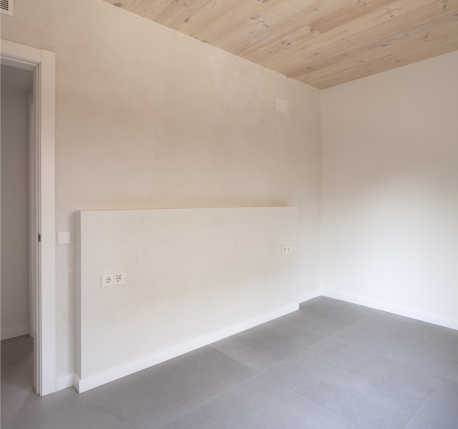 - Rayonnement artificiel : l’éclairage fonctionne avec du courant continu de 24 V afin d’éviter la génération de champs électromagnétiques. Les prises sont également équipées de câbles blindés pour minimiser ces radiations. Une attention particulière a été portée au choix des lampes, notamment dans des endroits tels que la table de nuit.