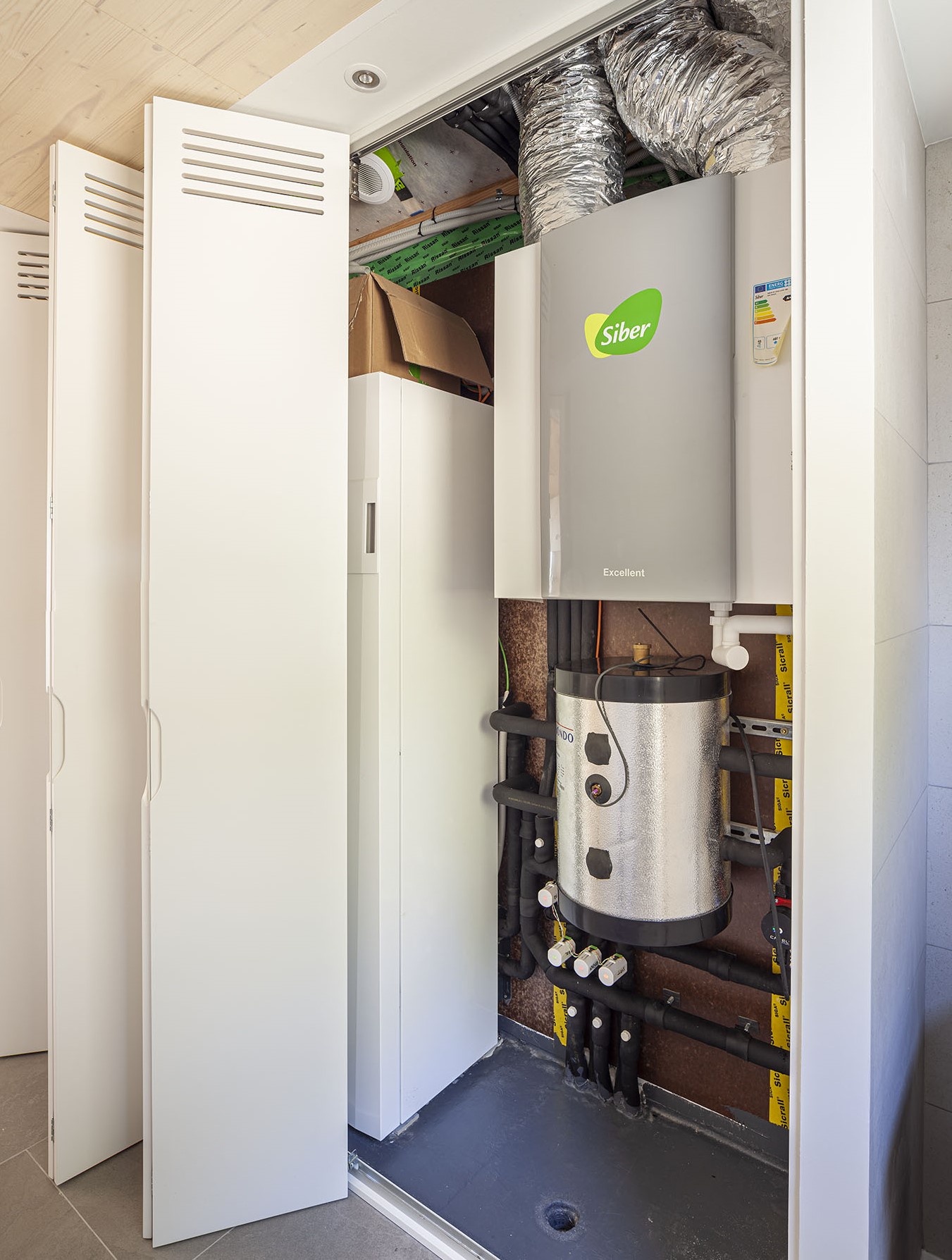 Afin d’éviter un logement stagnant avec un taux de CO2 élevé, des systèmes de ventilation à double flux ont été intégrés, également gérés par Loxone.