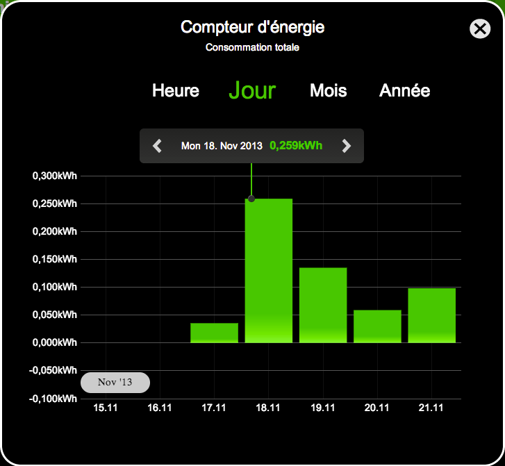 Certes vous pouvez visualiser votre consommation d’énergie, mais le plus important est de bien comprendre ces informations. L’App Loxone rend les informations visibles et compréhensibles en les recueillant sous forme de graphique, comme celui-ci par exemple :