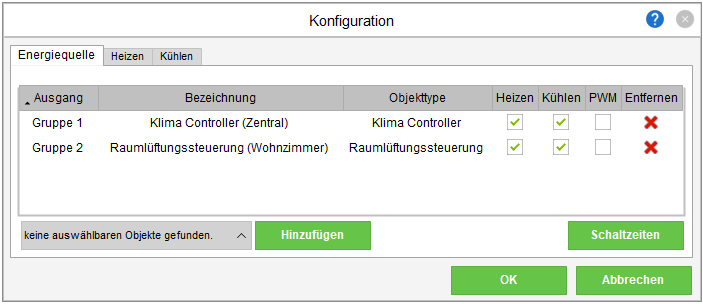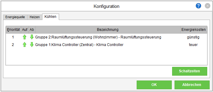 Si plusieurs sources de chauffage et/ou de refroidissement sont prévues dans la Real Smart Home de vos clients, plusieurs bloc Contrôleur HVAC peuvent être insérés. Dans les propriétés des Contrôleurs HVAC, en tant que partenaire Loxone, vous pouvez spécifier si la source de chauffage et/ou de refroidissement concernée fournit une énergie coûteuse ou peu coûteuse. Les sources d’énergie coûteuses ne sont demandées que si nécessaire.