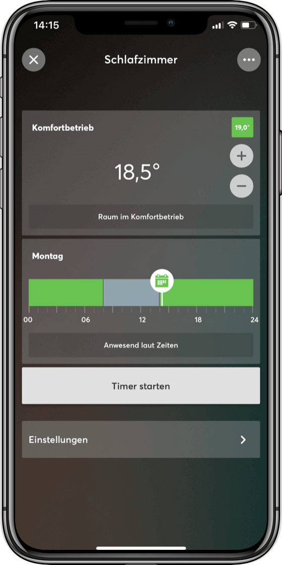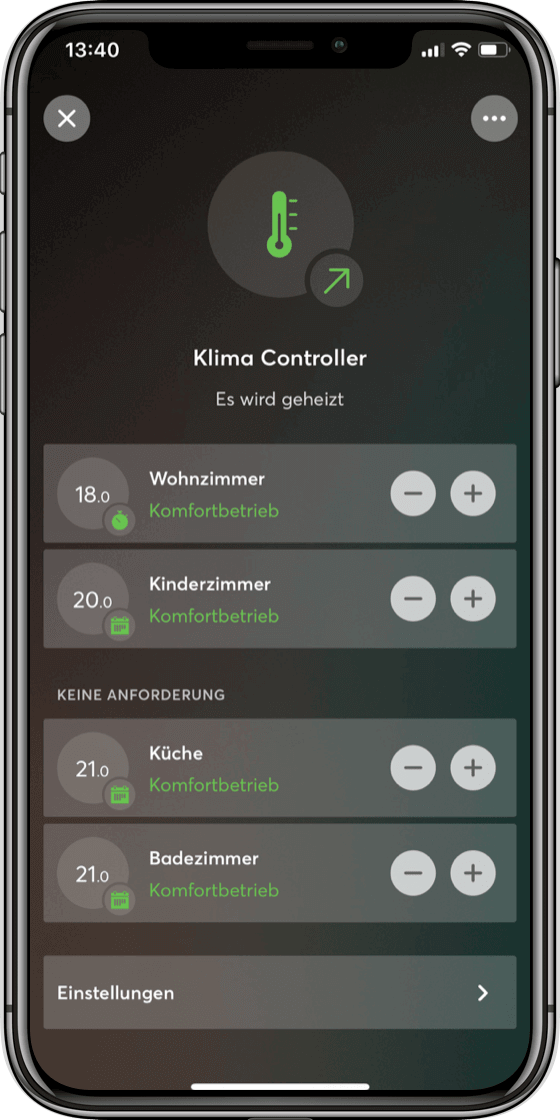 L’App montre en un coup d’œil quelles pièces sont chauffées et quelles pièces n’ont aucune demande.
