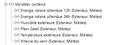 À l’aide des nouvelles variables du système, vous décidez quelles informations météorologiques sont les plus appropriées pour votre client. Que la station météo enregistre les données localement ou que les données soient déterminées via le service météo. Vous décidez quelles valeurs sont affichées dans la visualisation.