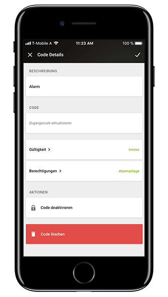 Créez facilement des codes pour votre NFC code Touch. Le code peut être utilisé par toute personne de votre choix, avec l’option de définir quand il expire ou définir un jour ou une période spécifique dans lequel le code fonctionnera. Vous pouvez supprimer le code et supprimer ses autorisations à tout moment avec quelques tapes dans l’app.