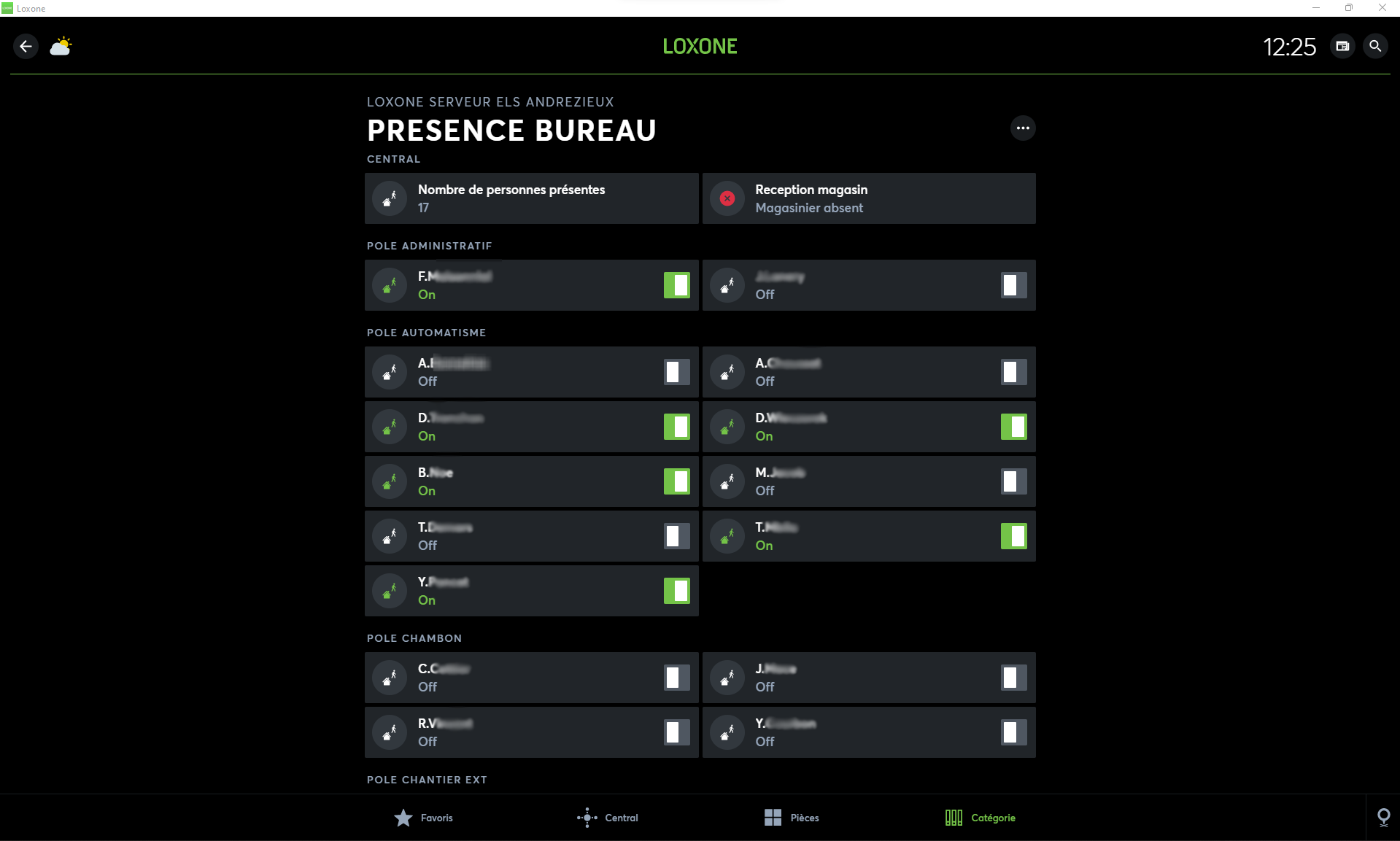 Toutes les entrées du bâtiment sont équipées de lecteurs de badge Loxone. Le badge de chaque utilisateur accorde des droits différents en fonction des zones. Certaines personnes ont des autorisations d’accès aux bureaux, d’autres des accès aux zones de stock/matériel, et d’autres à la totalité des locaux. Les autorisations peuvent varier en fonction de plages horaires et du calendrier.
