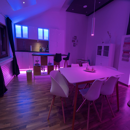 Pour faire briller votre propriété parmi les options sur Airbnb, imaginez proposer un scénario d’éclairage ambiant pour un séjour romantique. Avec le Loxone RGBW, vous pouvez créer une ambiance chaleureuse en un clic, en réglant l’éclairage sur des teintes douces et accueillantes. Les couples apprécieront cet effort supplémentaire, et vous recevrez des avis élogieux !
