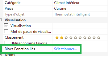 On clique d’abord sur le bloc, puis dans les propriétés de l’onglet Visualisation, en face de « Blocs fonction liés » cliquons sur Sélectionner :