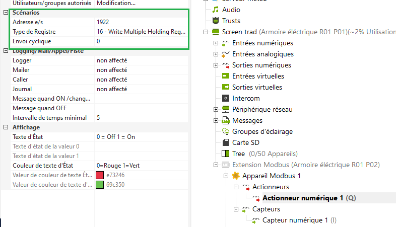 Ici, vous devez entrer l’adresse d’E/S, choisir le type de commande et le type de données (actionneurs analogiques uniquement).