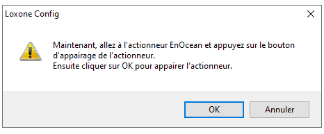 Si vous avez enregistrer votre projet, cliquez sur OK après avoir appuyez sur le bouton d’appairage de votre actionneur EnOcean