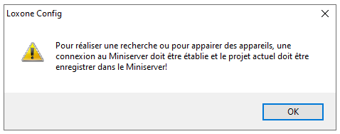 - Cliquez sur « OK » dans la configuration Loxone. (la LED s’allume en rouge)