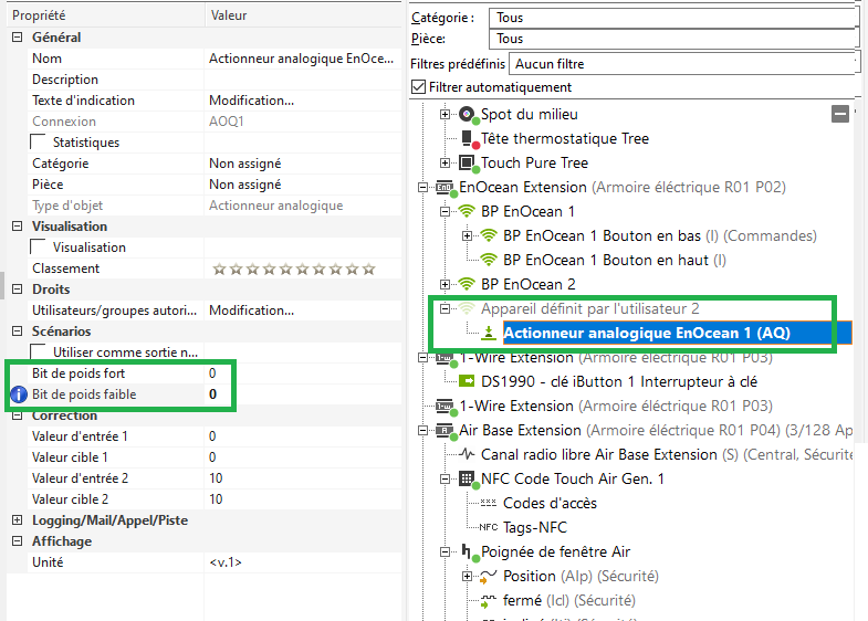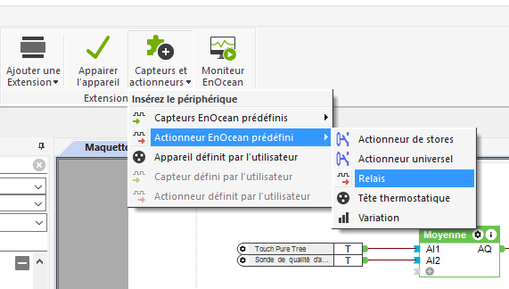 Insérez un actionneur EnOcean dans l’onglet « Extension périphérique ».