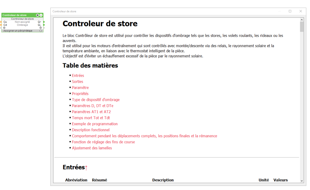 Notre logiciel de configuration vous fournit un manuel d’aide détaillé auquel vous pouvez accéder en cliquant sur le «i» dans le coin supérieur droit de tout bloc fonctionnel. Le fichier d’aide décrit toutes les fonctions, entrées, sorties et paramètres de chaque bloc fonctionnel.