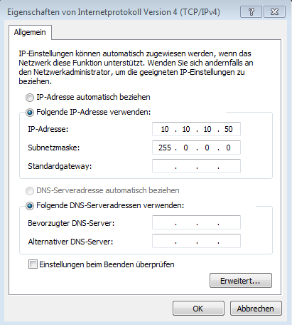 Donnez à votre PC l’adresse IP 10.10.10.50