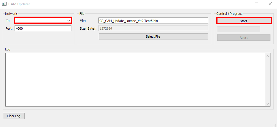 Par défaut, le fichier de mise à jour du dossier décompressé est utilisé. Cela peut éventuellement être modifié via « Select file ».