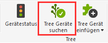 Pour appairer un appareil Tree assurez-vous que l’alimentation et la connexion à l’Extension Tree sont en place. Les LED des appareils Tree doivent clignoter en orange. S’il ne clignote pas en orange, vérifiez le câblage de l’appareil Tree. Recherchez maintenant l’appareil Tree. Cliquez sur l’extension Tree, puis activez « Recherche d’appareil Tree ».