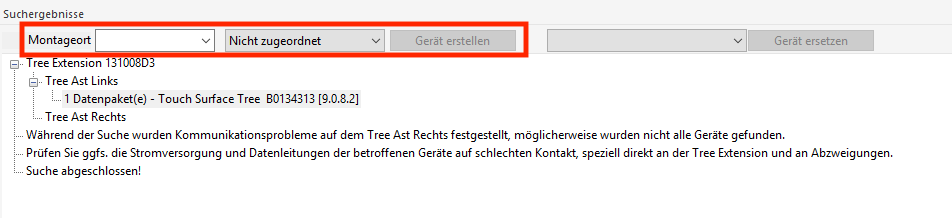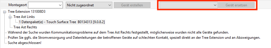 Si un appareil doit être remplacé, vous pouvez également le remplacer facilement dans la configuration grâce à la fenêtre de recherche Tree.