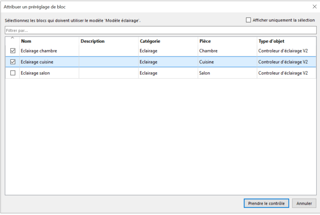 Dans l’exemple suivant, nous créons un modèle à partir d’un bloc de contrôle d’éclairage.