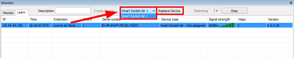 Si un appareil à été remplacé, vous devez mettre à jour le numéro de série. Vous pouvez facilement faire ça dans Loxone Config, dans le moniteur Air.
