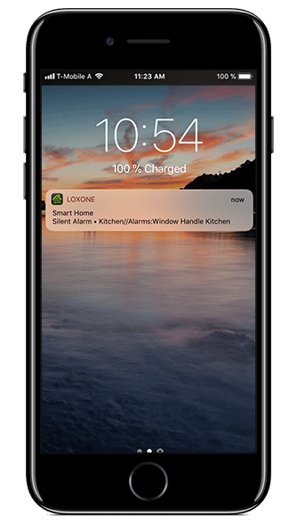- Notifications intégrées à l’App: elles apparaissent uniquement quand l’application Loxone Smart Home est ouverte