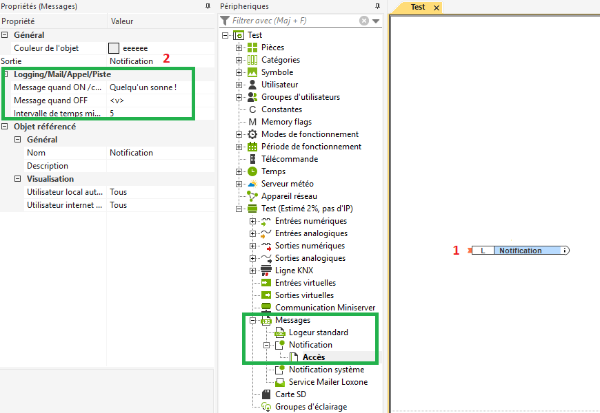 - Notifications que vous avez crées dans Loxone Config