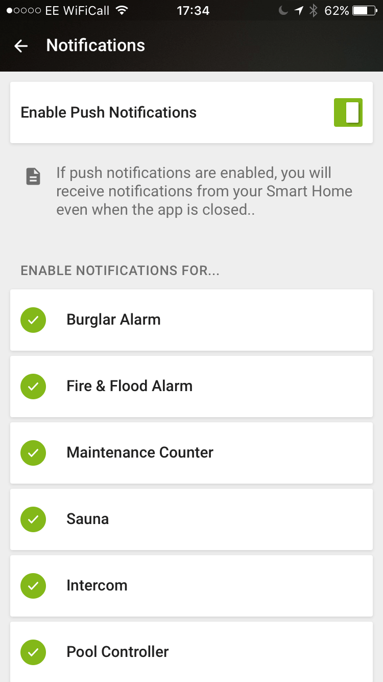 Ces notifications peuvent être limitées à des groupes d’utilisateurs spécifiques et peuvent être activées / désactivées via la section des paramètres de l’App Loxone Smart Home.