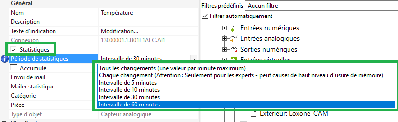 À partir d’une heure complète, la valeur actuelle est écrite dans les statistiques à l’intervalle défini.