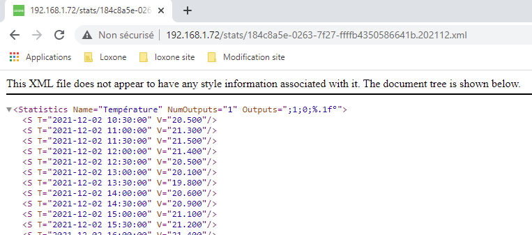Pour cela, saisissez l’URL suivante dans un navigateur : http : // MiniserverIP / stats /