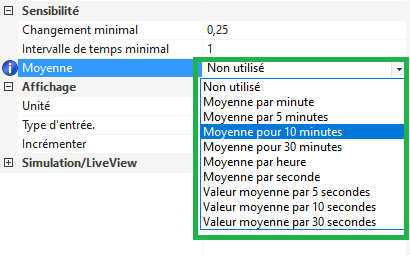 Si une valeur moyenne est souhaitée, elle peut être définie pour une entrée sous Sensibilité :