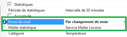 Afin d’envoyer des statistiques par mail, un intervalle d’envoi est défini dans les propriétés et un mailer est affecté :
