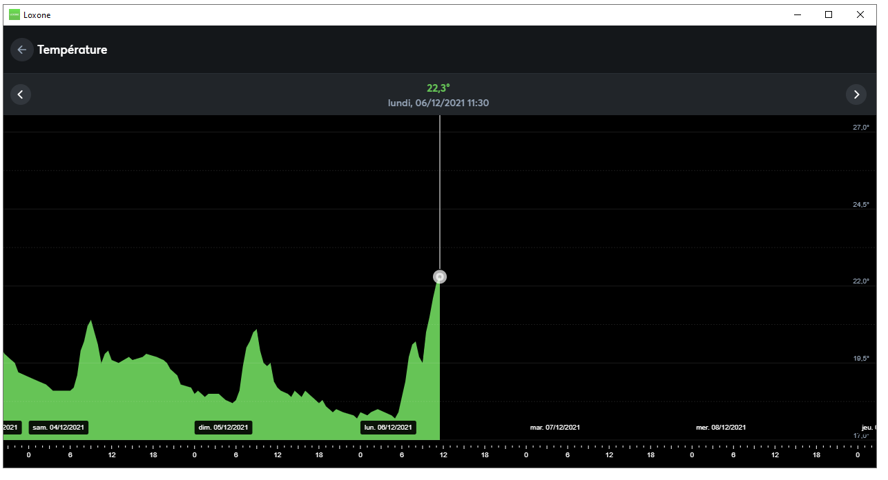 Les valeurs enregistrées peuvent ensuite être affichées graphiquement dans Loxone Config et dans la visualisation (site web ou application).