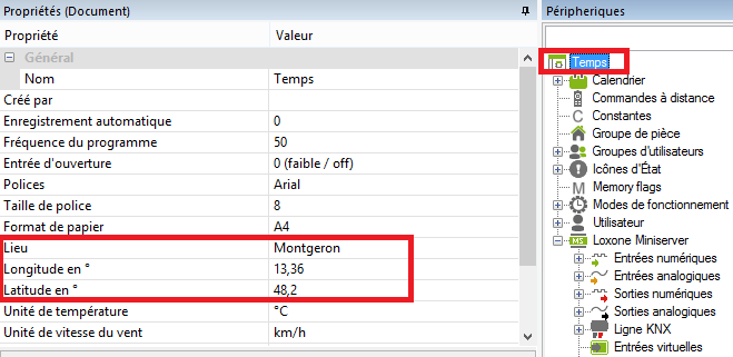 Le Miniserver peut calculer différents temps pour vous. Pour cela vous devez seulement définir le lieu où l’installation est implantée. Avec une connexion Internet active après avoir entré l’adresse, les Géo-coordonnées de cet emplacement seront déterminés automatiquement. Pour le calcul des temps, il n’y a pas besoin de connexion Internet.