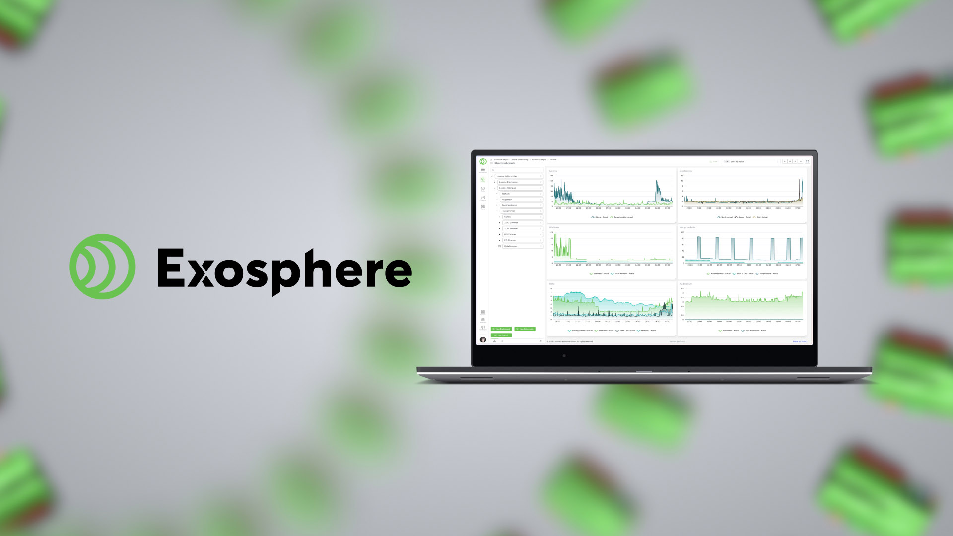 Exosphere permet le stockage et la visualisation centralisés de données partagées provenant d’un ou de plusieurs bâtiments. Les données provenant d’installations Loxone complexes, réparties sur différents sites, peuvent être visualisées efficacement dans des diagrammes de système ou des tableaux de bord et comparées entre elles.
