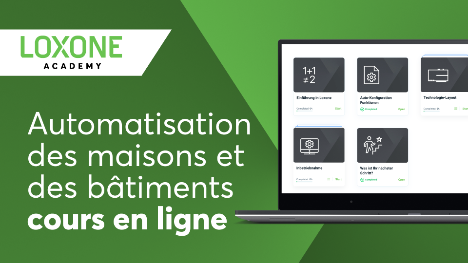 Le cours de démarrage Loxone est une plate-forme en ligne sur laquelle vous pouvez cliquer indépendamment à travers différents cours. Vous apprenez étape par étape les bases de Loxone et obtenez un aperçu du monde Loxone, de nos solutions et des avantages d’un partenariat.