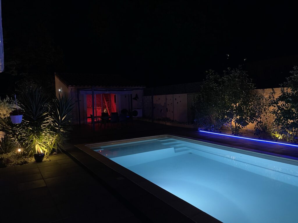 string(3038) "Invitation pour le nouvel an, en arrivant je sonne à l’intercom. Mon hôte m’ouvre, le portail une fois ouvert laisse place à un spectacle de lumière grâce aux bandeaux RGBW autour de la piscine, et des spots de lumière chaude illuminant les arbres. En arrivant à l’intérieur je découvre une ambiance chaleureuse, rendu possible grâce à la compatibilité des ampoules Hue. Un fond sonore adapte le volume en fonction de la conversation. En visitant la maison je découvre l’étendue des fonctionnalités :