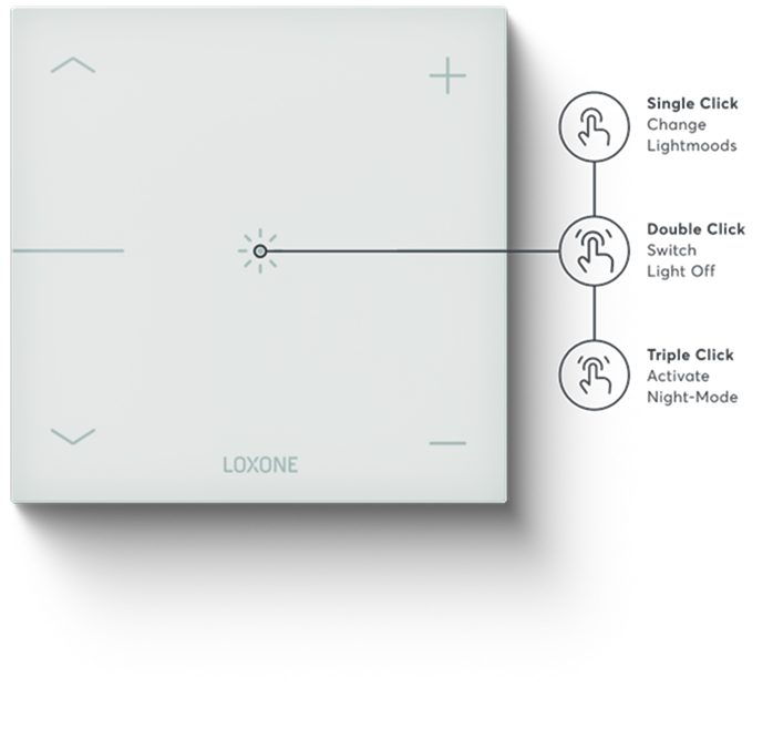 Simple manual operation via Loxone Touch with one or more clicks, automatic lighting with presence detectors and lighting control via Loxone App.